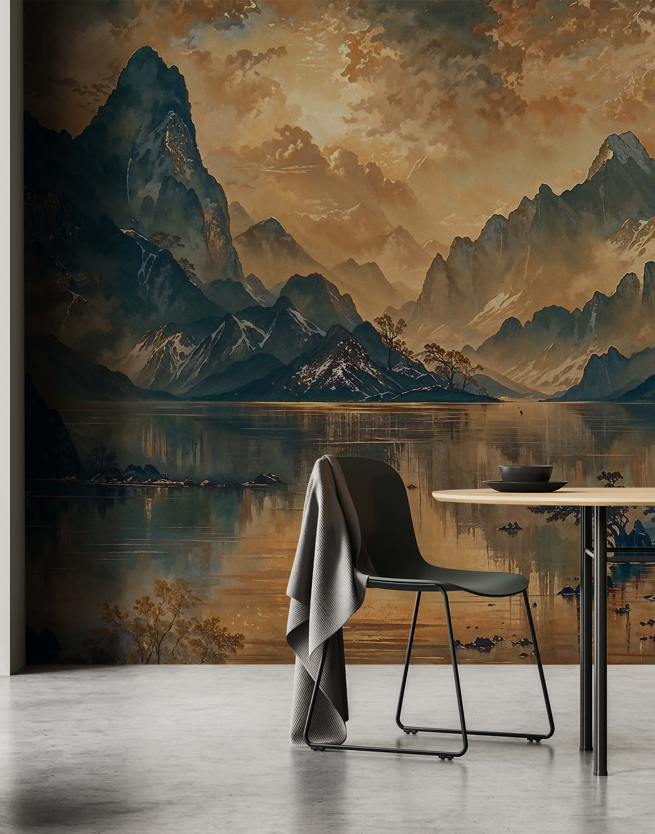 Fresque murale en papier peint de paysage oriental sombre